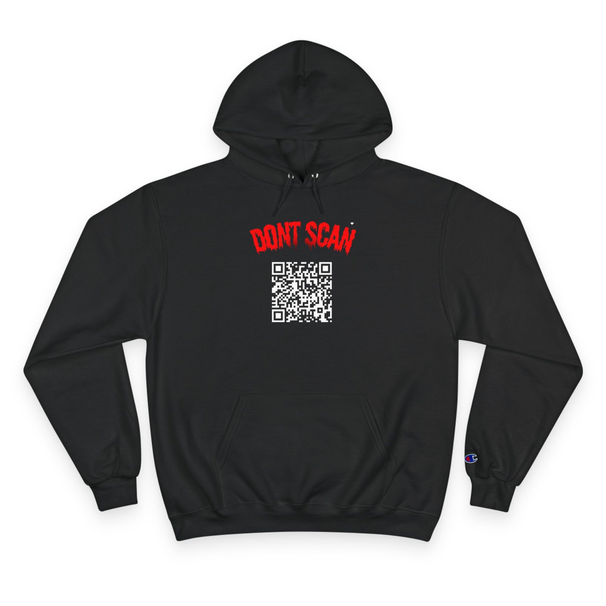 Don't Scan Champion Hoodie - Unisex Black Sweatshirt with QR Code Design